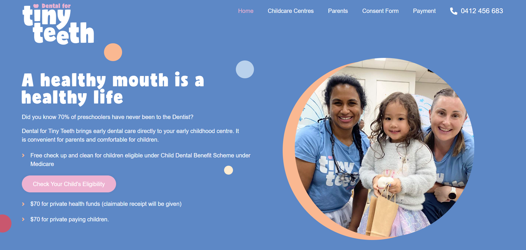 This fun and engaging website is designed with the user experience in mind. The website provides informative content for parents and child care centres alike and an integrated form to streamline the online booking process. A cohesive colour palatte and simplistic layout add to the charm of the website, bringing with it an uncomplicated experience for all users. Check it out online: https://dentalfortinyteeth.com.au/ |