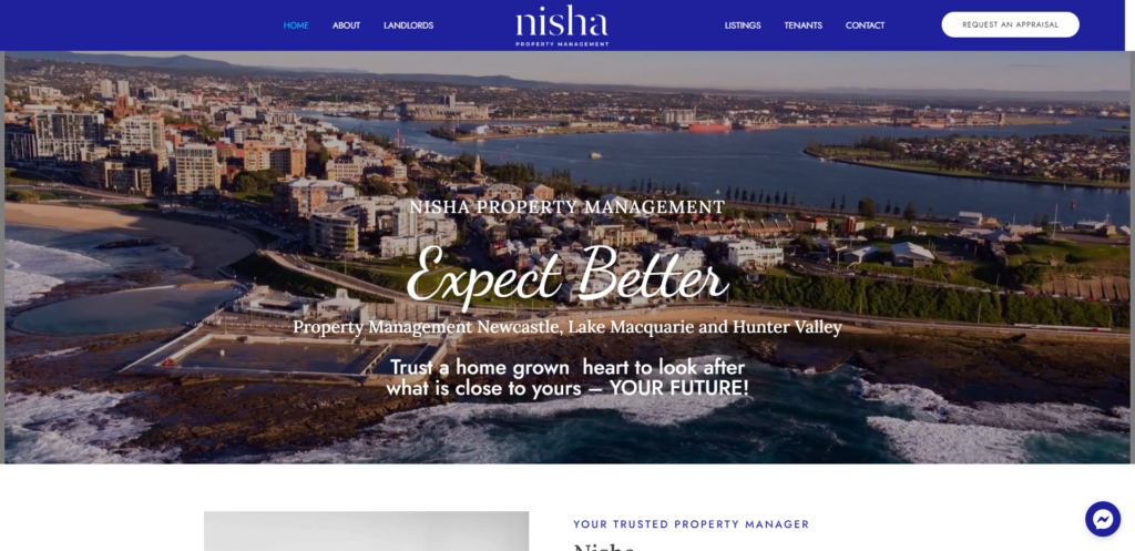 The website for Nisha Property Management is the design pinnacle for independent real estate services in the Newcastle and Lake Macquarie area. It features a contemporary layout, sophisticated navigation, and an integrated property database for potential buyers and sellers to view and enquire about the property portfolio. By prioritising simplicity and convenience, the website design establishes a direct connection between users and the diverse array of real estate offerings available at Nisha Property Management. Check it out online: https://nishapropertymanagement.com.au/ |