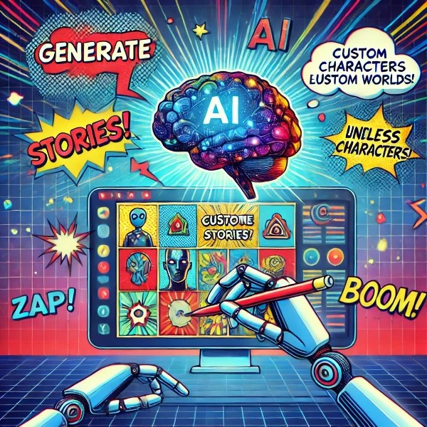 There's no true "random" in the way an LLM (Large Language Model) works and if we ask it for ‘a random story’ by typing into ChatGPT ‘make me a random story’ then there is no feeling of creative direction by the person. Plus we want it to be structured to suit a comic book. While you might imagine that an AI can just throw together a random plot or character, it's not quite that simple. LLMs are trained on massive datasets of text and code and they use statistical analysis to generate content, meaning that even seemingly "random" events are deeply rooted in the data they were trained on and the instructions we give them.