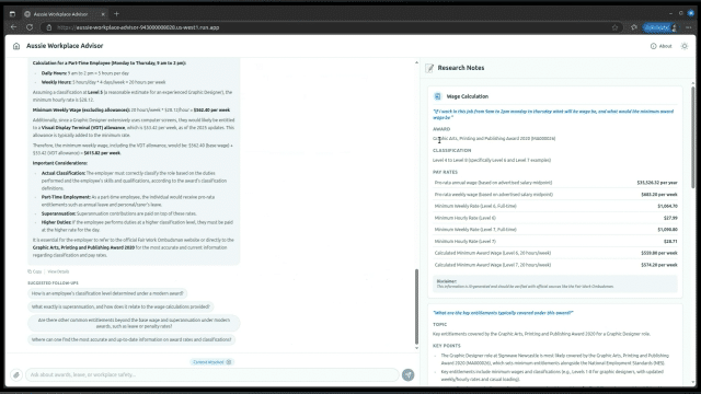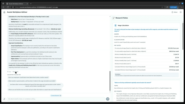 I built a quick demo called the "Aussie Workplace Advisor". It's powered by Google's latest AI, and the key difference is that it's designed to understand context and research facts from trusted sources.
