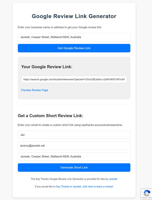 I called it Say Thanks. One page, one input field, one API call. Took me the better part of a week. I'm pretty sure I spent an entire evening just getting the reCAPTCHA to work. I sent a newsletter out about it in January 2025 and a bunch of clients signed up. Englewood Ridge has had 186 people click through to their Google review page from it. It's still running today.